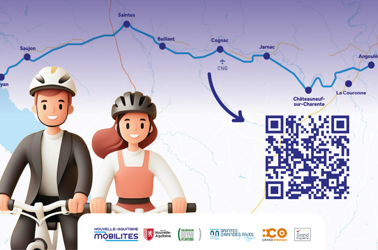 Plus de 160 vélos sont disponibles dans 27 stations réparties dans les gares d’Angoulême, Cognac, Royan, Saujon, Saintes, Beillant, Jarnac et Châteauneuf. En complément des stations ont également été installées en ville à Angoulême, Cognac et Royan.